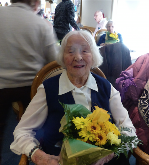Centennial made sure that each birthday lady or gent was well acknowledged with a bouquet of flowers and personalized power point slides. With many of them still cracking jokes and smiling, these special residents shared some secrets from over 100 years of life. One resident, Frances Caird, was born on December 1st, 1915, and said her secret to a long and happy life is always “having a goal.” Another resident, Jean Kitchen, was born on July 20th, 1915 and shared her secret of eating ice cream two times a day and advised younger generations to “behave yourselves.” 102 year old Donald Howson was an ordained minister at St. Andrews Church in New Brunswick. Donald says his secret for longevity is “being optimistic and determined”. Meanwhile, Eileen White, who was born January 17th, 1914, says to “keep on trying and never give up.” Carroll Davidson also learned over the years that, “if you don’t have anything nice to say, don’t say anything at all.” Eileen’s older sister, Marjorie Kettyle, was born on July 29th, 1912 and also celebrated over 100 years of life. Resident, Stella Kennedy, was born on July 24th, 1913, and recalls that her family was the first in her area to own a radio and television, and shares that her children are her greatest accomplishment.