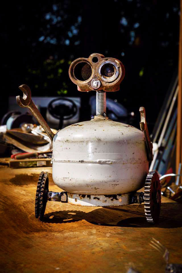 Amanda Fillmore is a metal artist whose work is sold at local retail outlet Anchor and Company. She was first introduced to metal work in high school at Adam Scott Collegiate when her father suggested she consider welding for her Co-op semester. Her creative side was already well developed, as in grade 8 an oil painting she submitted to the Buckhorn Art Show won an award. She spent the semester at Canadian Welding Skills in Bridgenorth, and became intrigued with the flexibility of metal and the variety of components at her disposal. On one winter day with few students in the classroom, students were given the freedom to experiment with the trade. She began to play around with some scrap material and began to make metal art. Since then she continues to collect scrap metal components for her expanding variety of projects.