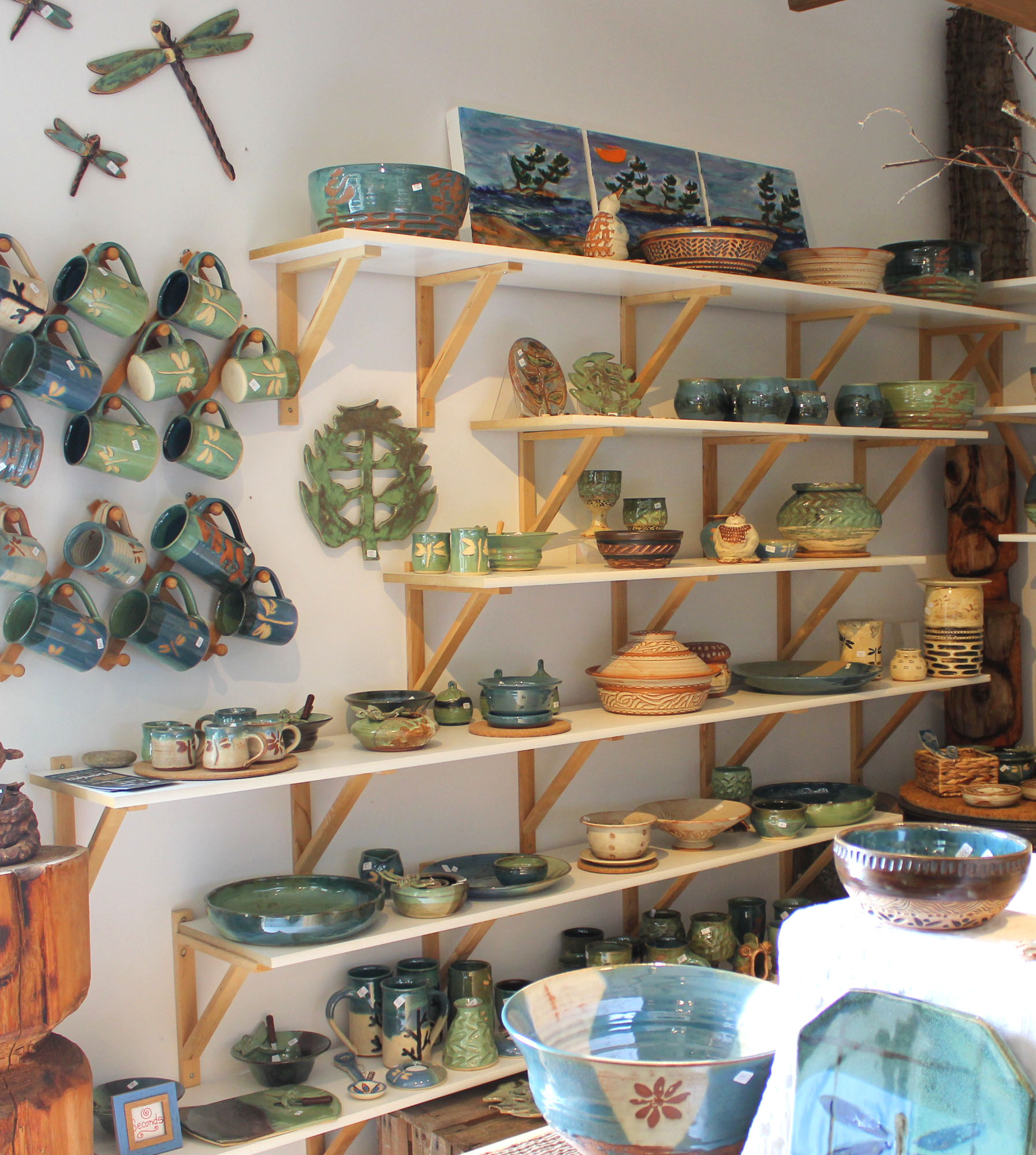 - A wide assortment of plates, mugs, bowls, vases, wall ornaments, and decorations found at Clayworks Pottery Shop. Photo: Melodie Seto